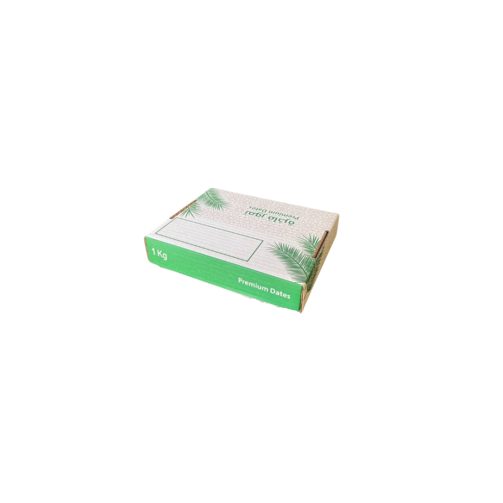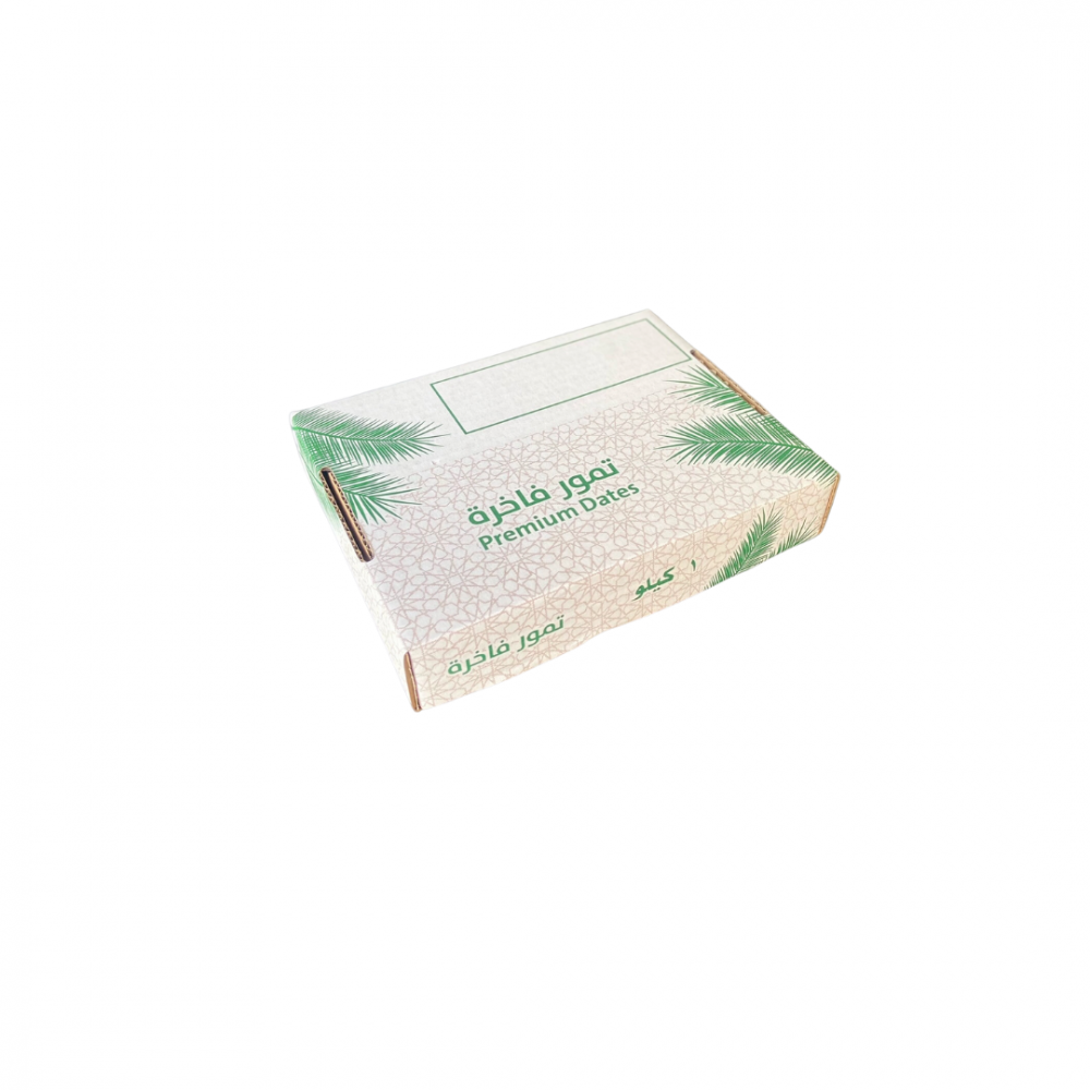 50 كرتون تمور 1 كيلو مصمم خصيصاً لتجّار وبائعي التمور بجودة وخامة عالية مع تصميم بسيط يلائم المنتج. مطبوع 3 الوان