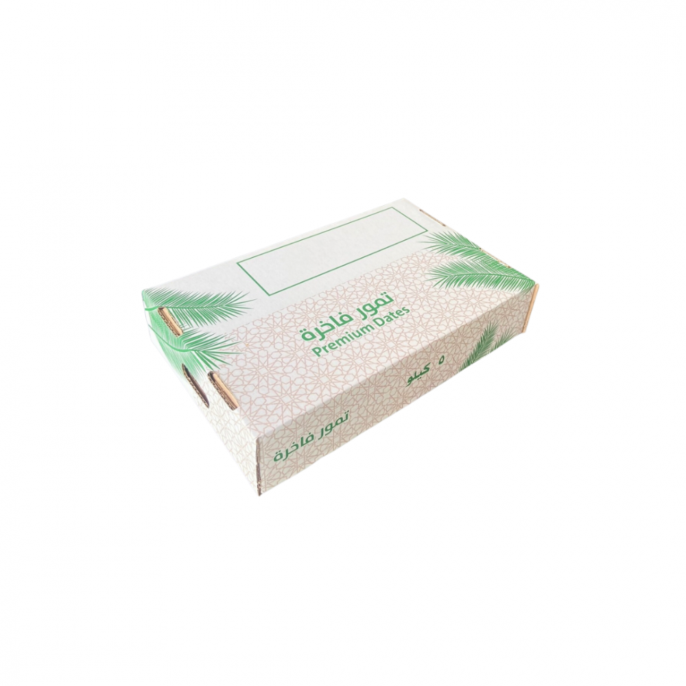 50 كرتون تمور 5 كيلو مصمم خصيصاً لتجّار وبائعي التمور بجودة وخامة عالية مع تصميم بسيط يلائم المنتج. مطبوع 3 الوان